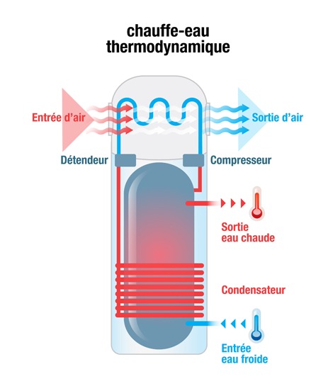 Le chauffe-eau à pompe électrique.